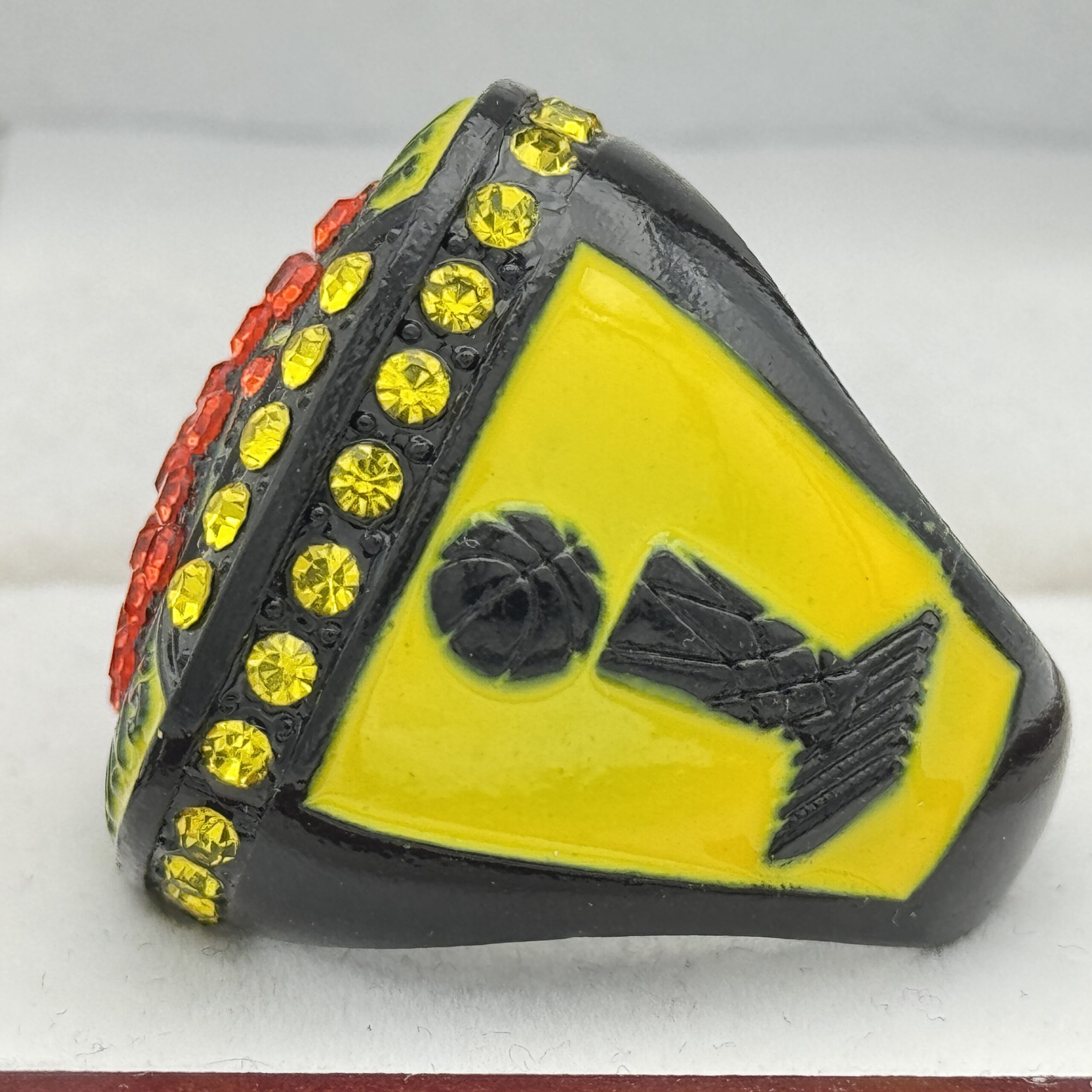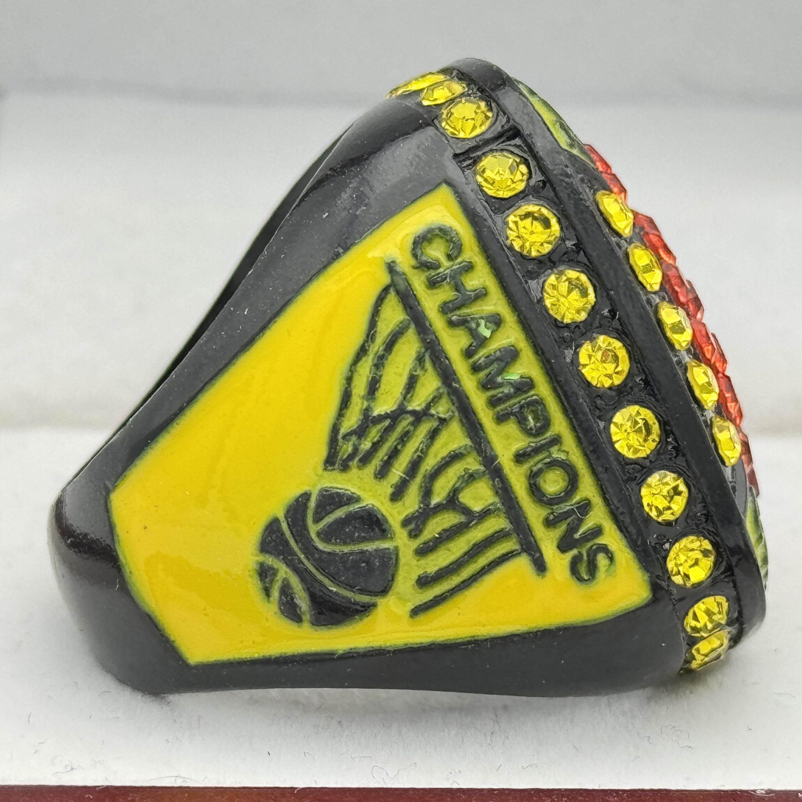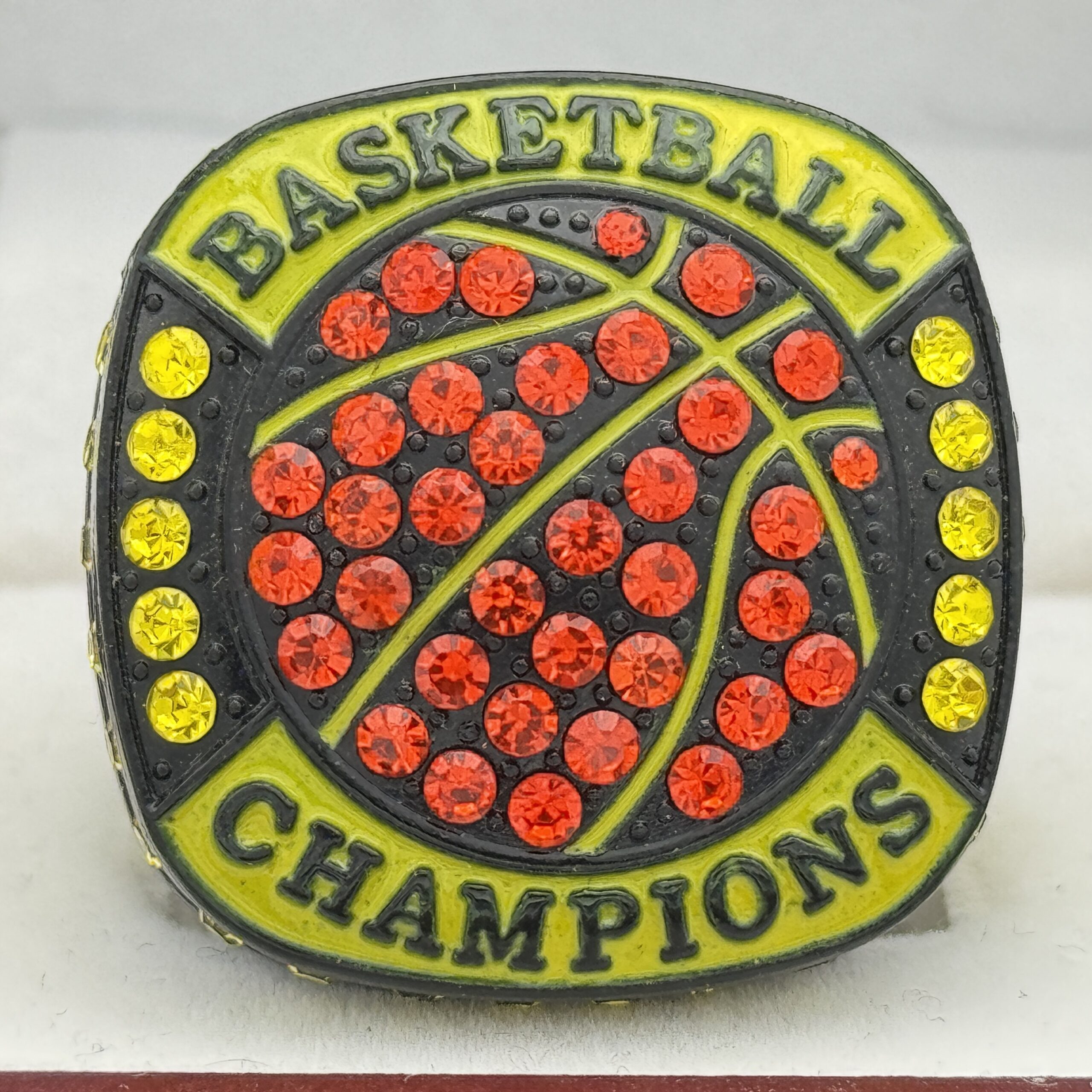 BASKETBALL CHAMPION RING — BLACK BODY, YELLOW STONES (Item #52-28)
