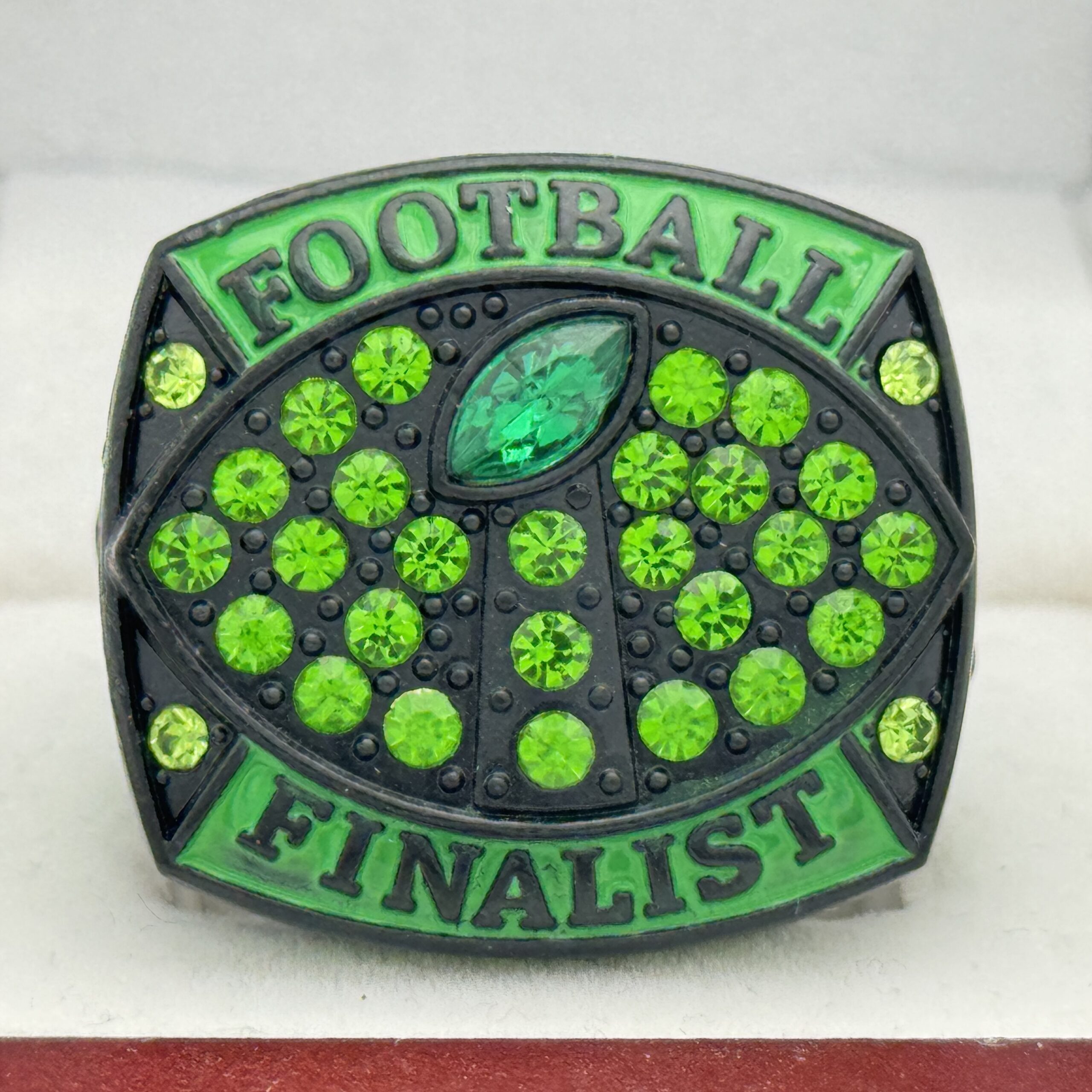 CLASSIC FOOTBALL FINALIST RING — BLACK BODY, GREEN STONE (Item #51-93)